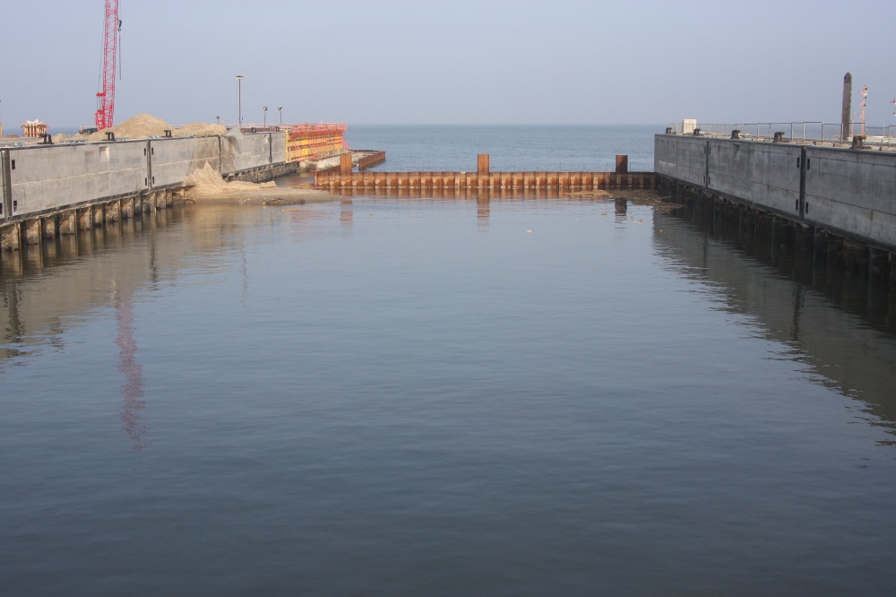 25.01.09: Ganz schön breit, wenn man direkt am Ende des Stichhafens steht. Trotz der errichteten Spundwand hat das Wasser anscheinend doch einen Weg ins Becken gefunden...