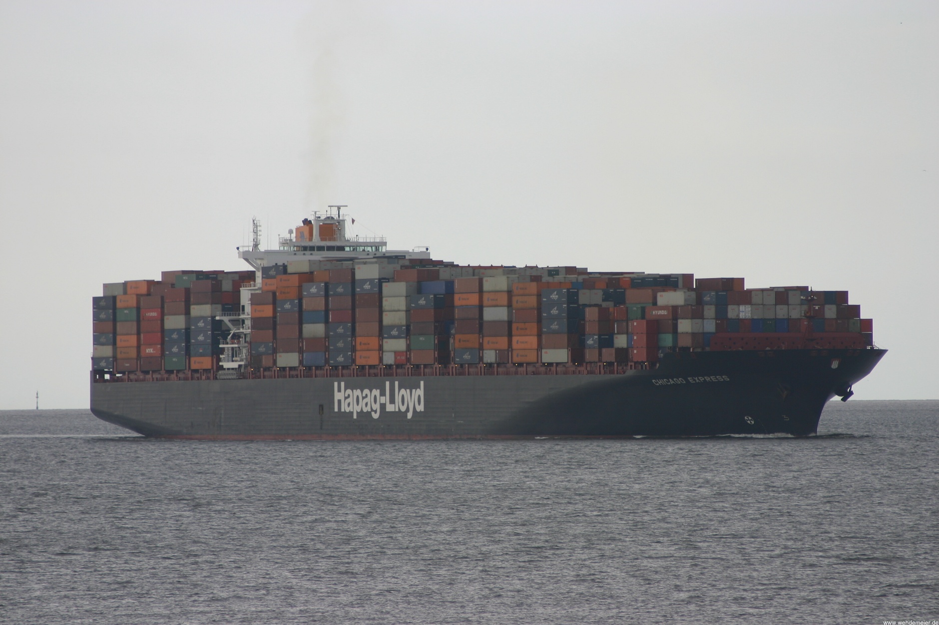 Containerschiff elbaufwärts vor Cuxhaven-Groden am 13.08.2007