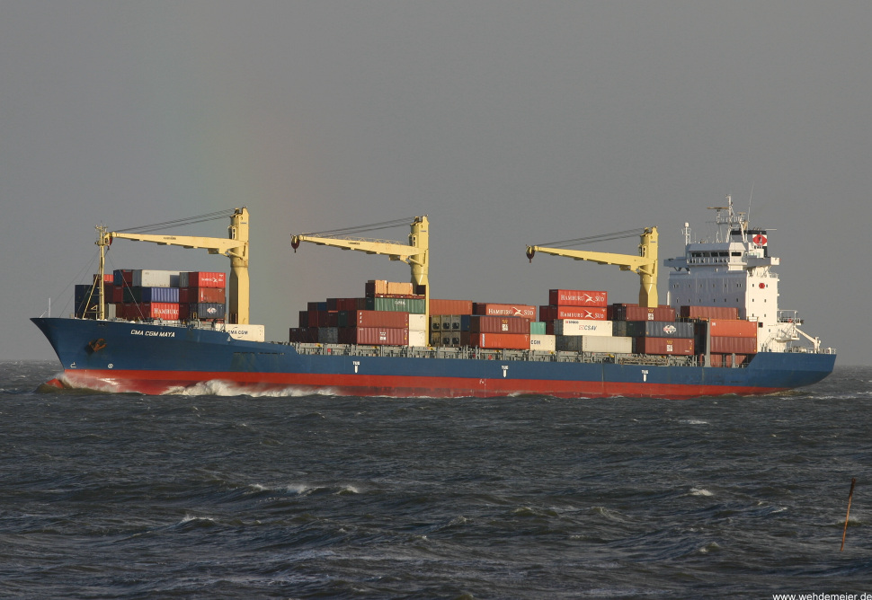 Containerschiff elbabwärts vor Cuxhaven-Groden am 12.11.2006