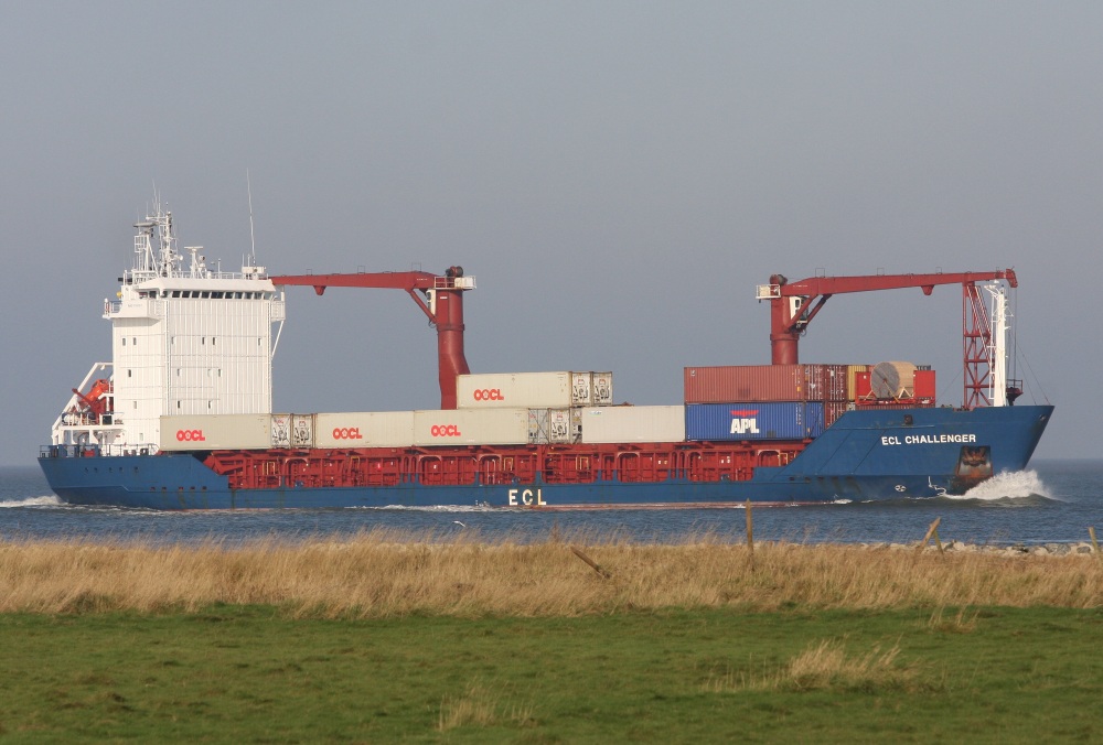 Frachtschiff elbaufwärts vor Cuxhaven-Altenbruch am 02.11.2014