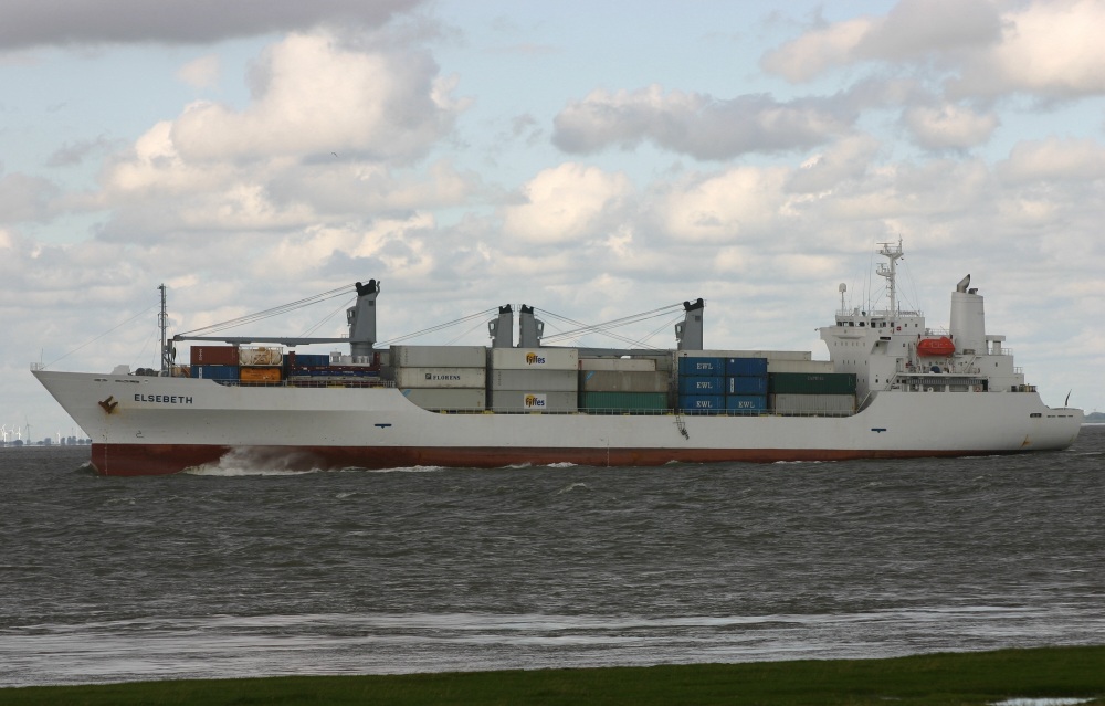 Frachtschiff elbabwärts vor Cuxhaven-Groden am 28.06.2007