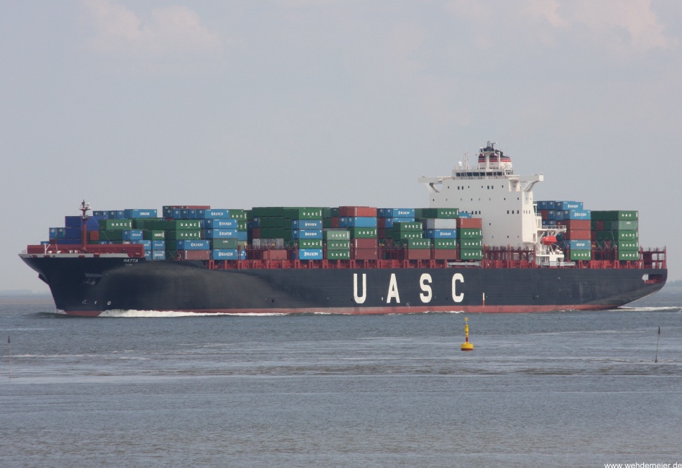 Containerschiff elbabwärts vor Cuxhaven-Groden am 07.06.2008