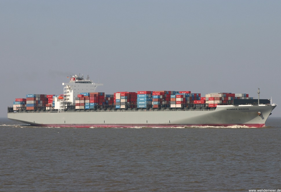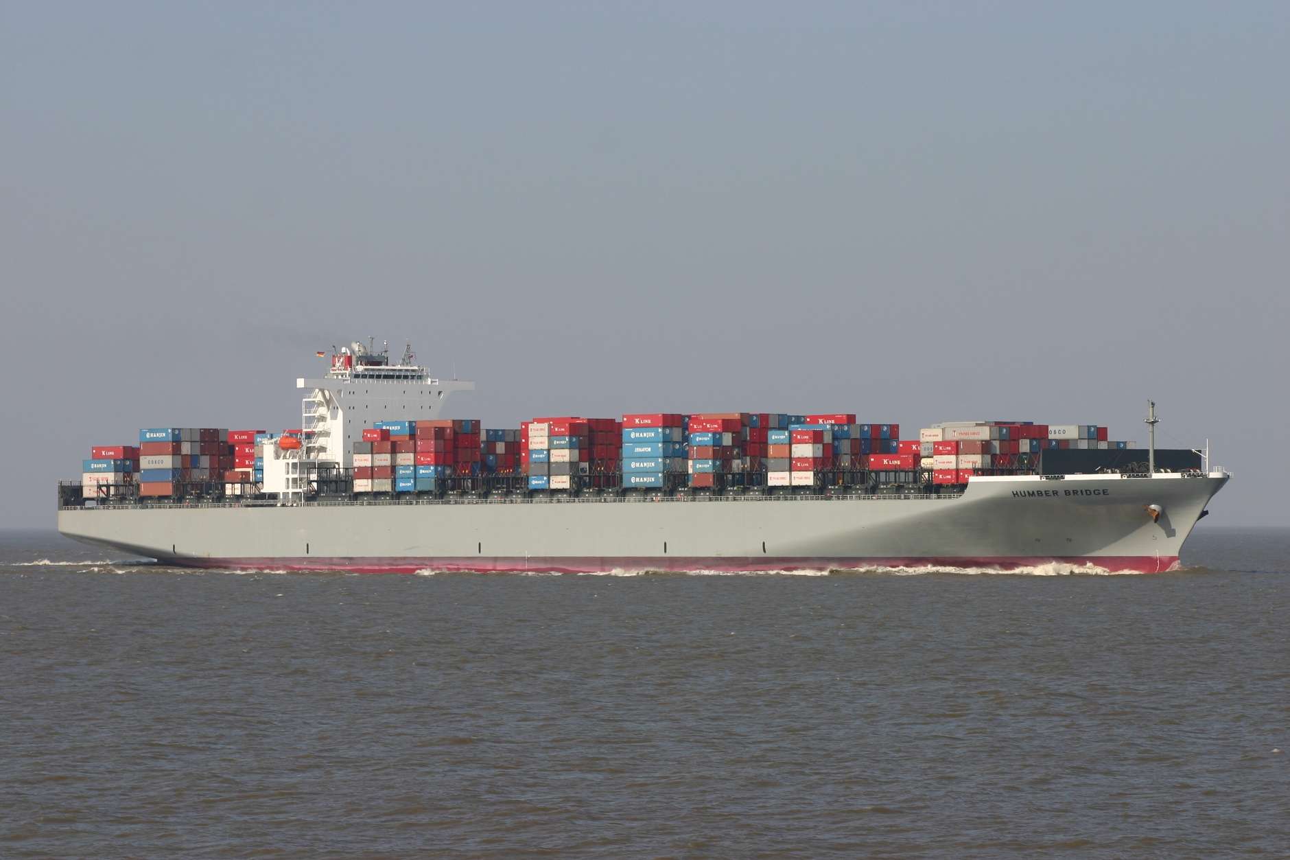 Containerschiff elbaufwärts vor Cuxhaven-Groden am 25.03.2007