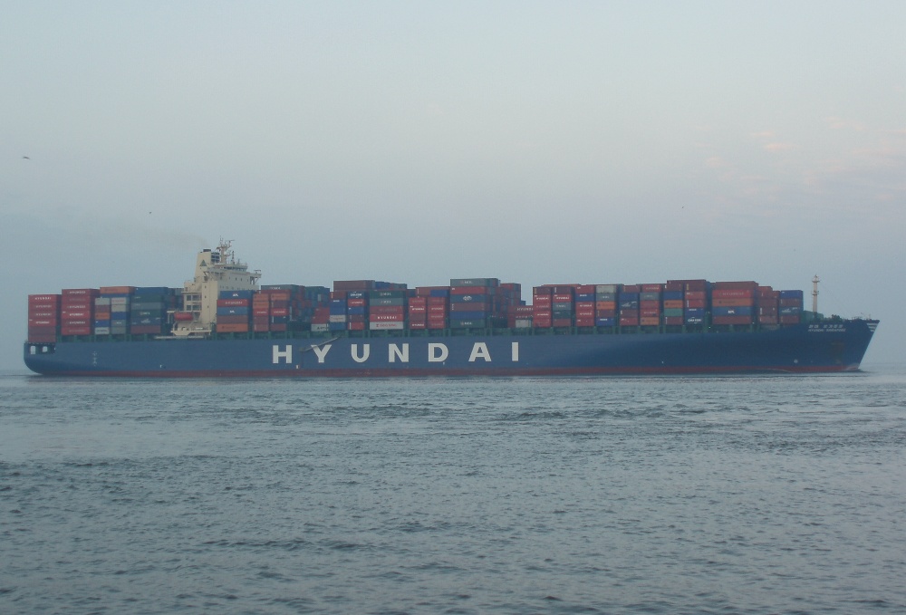Containerschiff elbaufwärts vor Cuxhaven-Groden am 27.10.2007