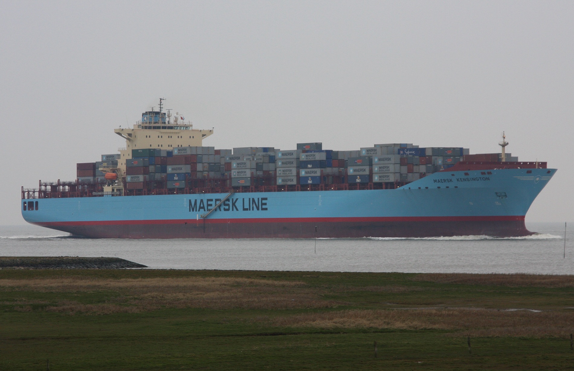 Containerschiff elbaufwärts vor Cuxhaven-Altenbruch am 09.03.2008