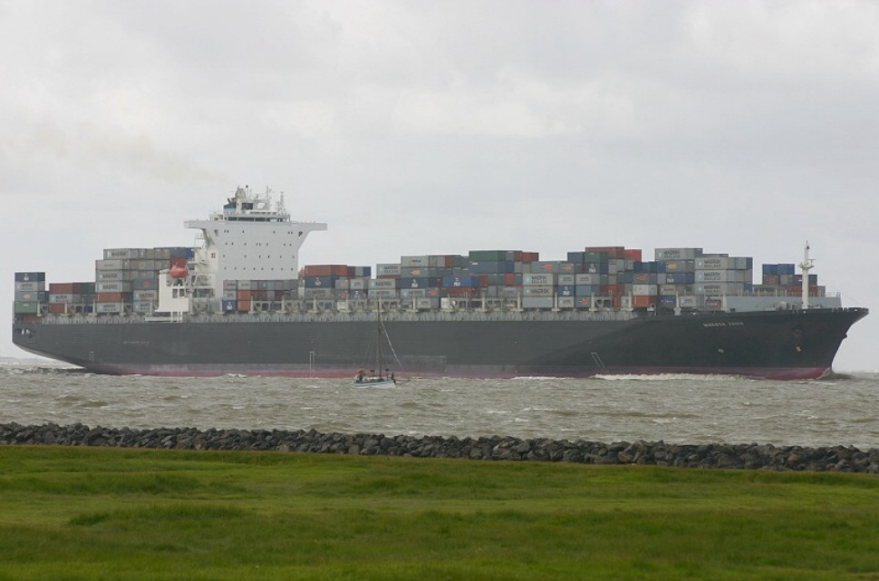 Containerschiff elbaufwärts vor Cuxhaven-Altenbruch am 04.06.2006