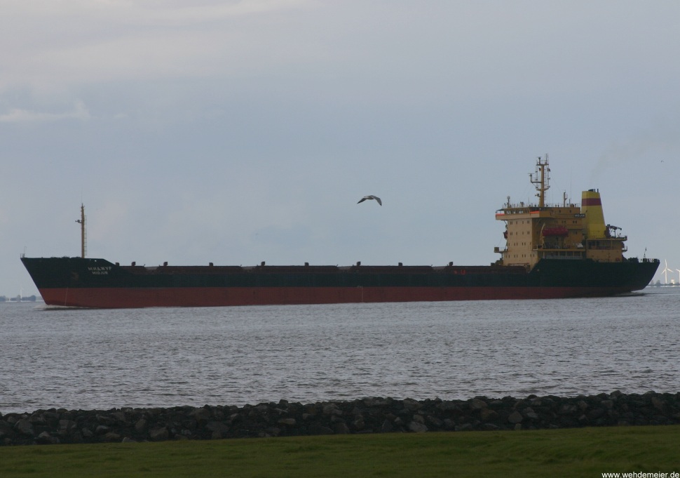 Frachtschiff elbabwärts vor Cuxhaven-Altenbruch am 26.09.2007