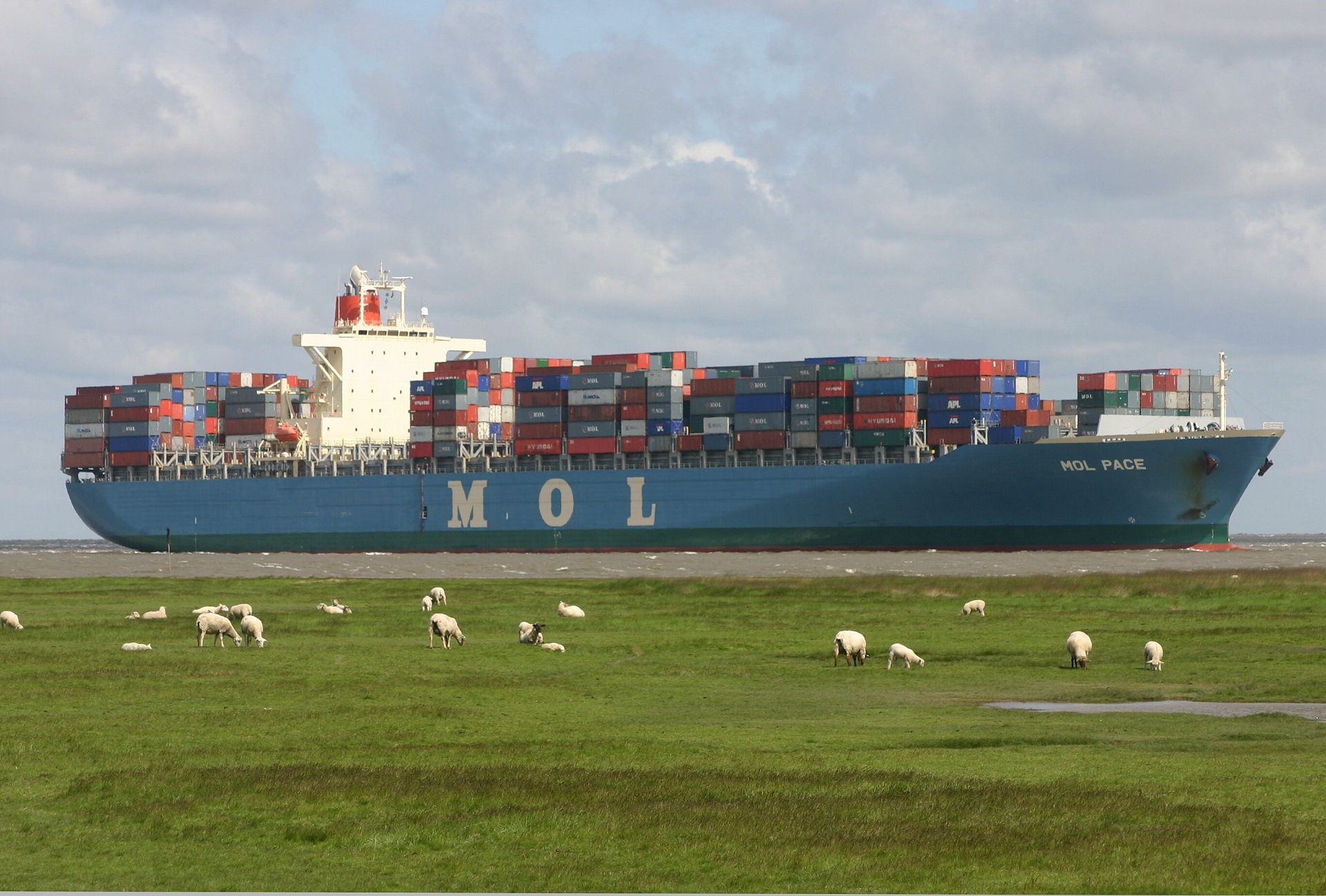 Containerschiff elbaufwärts vor Cuxhaven-Groden am 17.05.2007