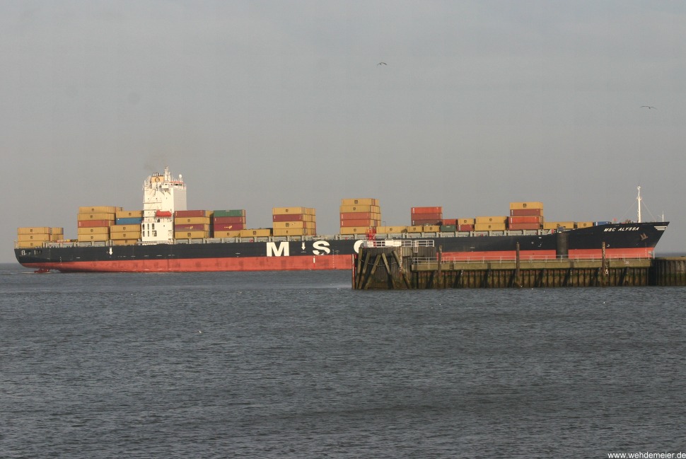 Containerschiff elbaufwärts zwischen der Alten Liebe und Steubenhöft am 15.01.2007