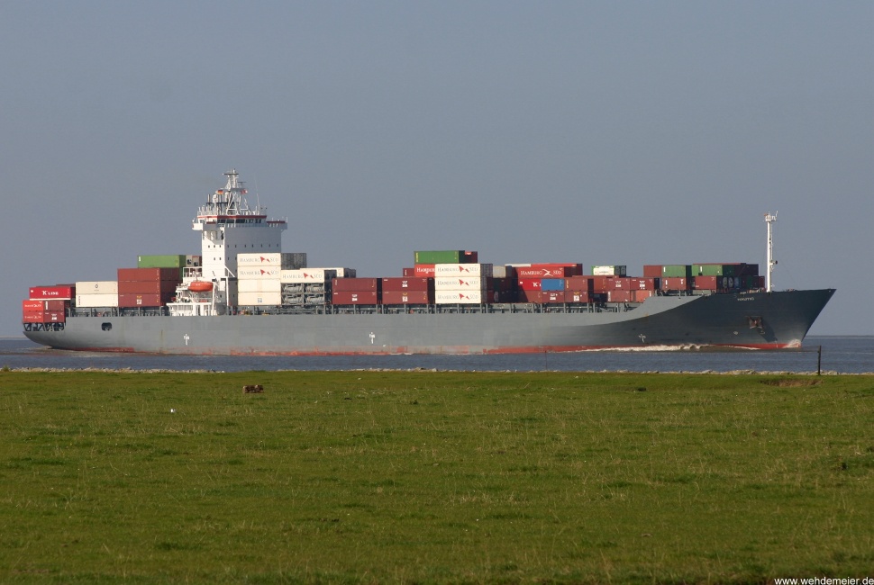 Containerschiff elbaufwärts vor Cuxhaven-Altenbruch am 03.10.2007