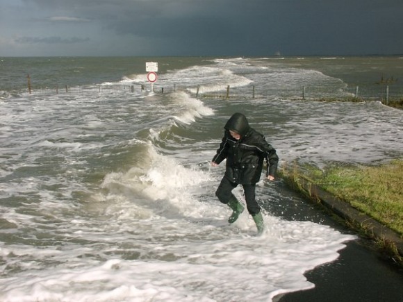 Die Nordsee und die Elbe, die ursprünglich mehrere Mündungsarme besaß, haben ihre Sinkstoffe vor der Geest abgelagert und das Gelände allmählich erhöht. An günstigen Stellen bildeten sich so Inseln, die nicht bei jedem neuen Hochwasser überflutet wurden. Diese Stellen waren hervorragende Weideplätze und zogen die Bewohner der hohen Geest mit ihren Herden an. Im weiteren Verlauf wurden hohe Erdhügel, die sogenannten Wurten, errichtet, die auch bei höheren Fluten noch aus dem Wasser ragten. Dadurch wurde verhindert, daß sich Mensch und Tier bei kleineren Sturmfluten auf die höheren Gebiete der Geest zurückziehen mußten. Um trockenen Fusses von einer Wurt zur anderen zu gelangen, wurden sogenannte Wegedämme gebaut. Diese lokal begrenzten Dämme stellten die ersten Deichlinien dar und boten den Bewohnern in den dahinter liegenden Kögen einen gewissen Schutz. Um nicht alleine der Natur das Schicksal über den Küstenverlauf zu überlassen, begann man etwa ab dem Jahr 1100 n. Christus intensiv mit dem Bau von Deichen entlang der gesamten Küste. Als Material eignete sich hervorragend der schwere Kleiboden aus der näheren Umgebung. Diese Deiche waren natürlich bei weitem nicht so hoch und stabil gebaut wie in der heutigen Zeit. Höhere Sturmfluten durchbrachen in der Folgezeit immer wieder die Deiche und veränderten die norddeutsche Landschaft. So entstand zum Beispiel auch der Jadebusen bei der Julianenflut im Jahre 1164. Vor allem an der nordfriesischen Küste brachen die Fluten große Landgebiete ab und hinterließen immer kleiner werdende Inseln und Halligen. An vielen Stellen im Watt werden noch heute bei extrem niedrigen Wasserständen die Überreste alter Höfe und Ställe sichtbar. Obwohl die heutigen Seedeiche relativ sicher gebaut sind, kann niemand genau vorhersagen, welche Höchstwasserstände beim Zusammentreffen aller ungünstigen Faktoren tatsächlich möglich sind, wie z.B. durch langanhaltenden Nordweststurm, Springflut, hohe Niederschläge und aufgeweichte Deiche oder Fernwellen. Das trügerische Gefühl der Sicherheit, wenn längere Zeit nichts passiert, war es, daß 1954 in Holland und 1962 an der Deutschen Nordseeküste vielen Menschen das Leben kostete. |