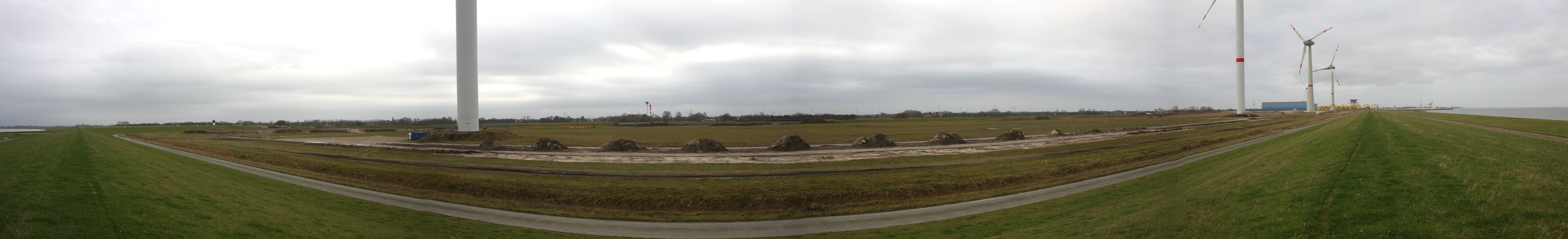 180°-Rundblick vom Deich zwischen Cuxhaven-Groden und Altenbruch mit Blick auf