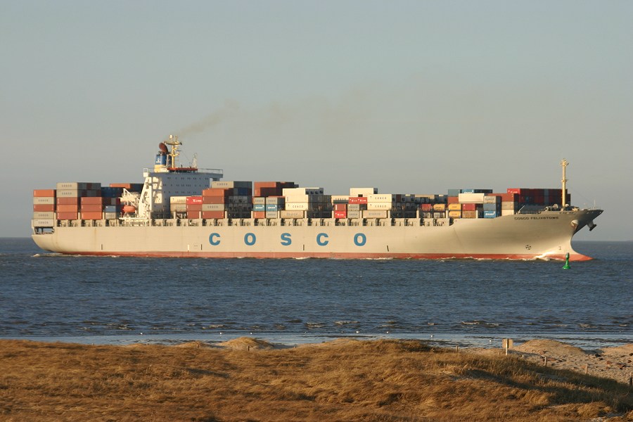 Containerschiff am 14.03.2005 in Höhe der Kugelbake