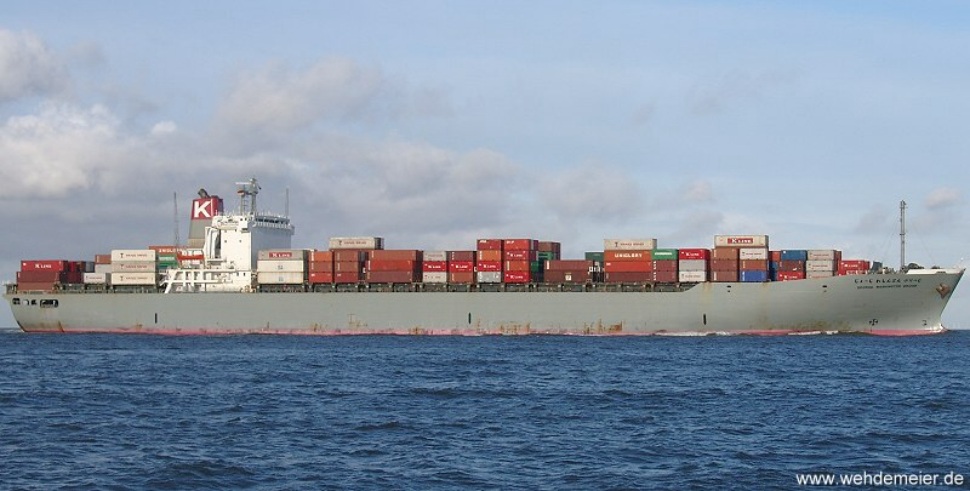 Containerschiff am 08.02.2004 elbaufwärts vor Cuxhaven-Groden