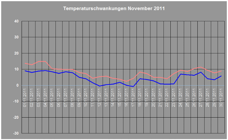 Durchschnittstemperatur im November 2011: +6,3° C