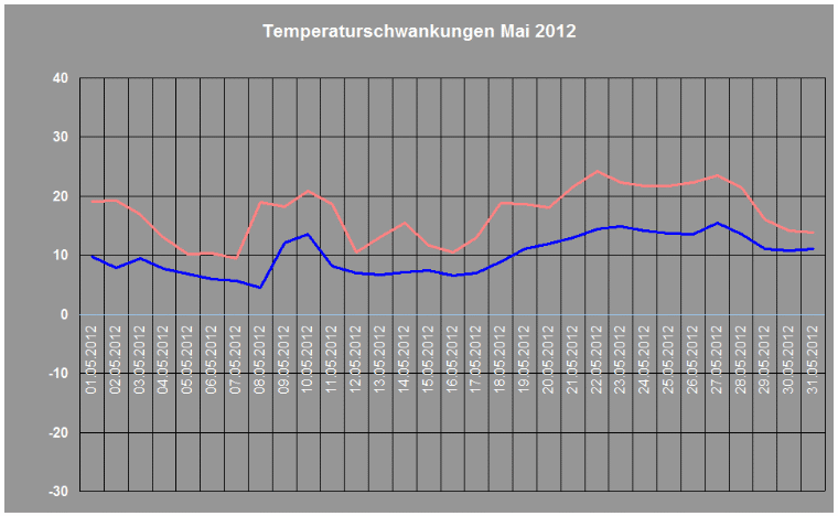 Durchschnittstemperatur im Mai 2012: +13,2° C