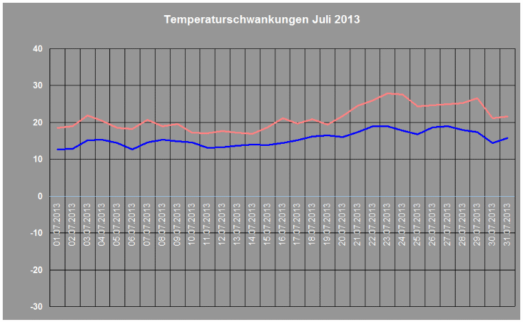 Durchschnittstemperatur im Juli 2013: +18,1° C