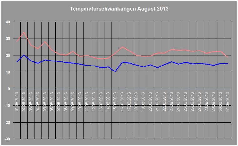 Durchschnittstemperatur im August 2013: +18,6° C