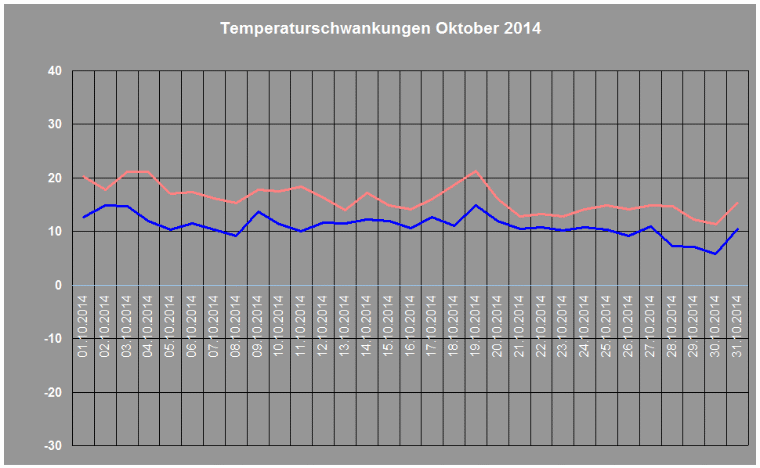 Durchschnittstemperatur im Oktober 2014: 13,4° C