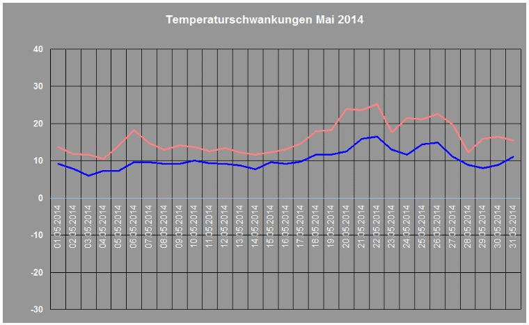 Durchschnittstemperatur im Mai 2014: 12,8° C