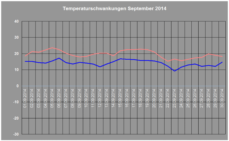 Durchschnittstemperatur im September 2014: 16,6° C