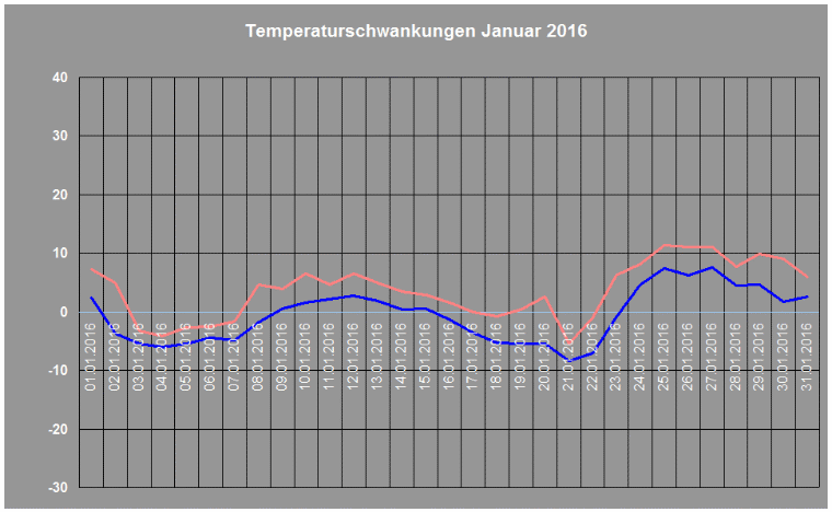 Durchschnittstemperatur im Januar 2016: 1,8° C