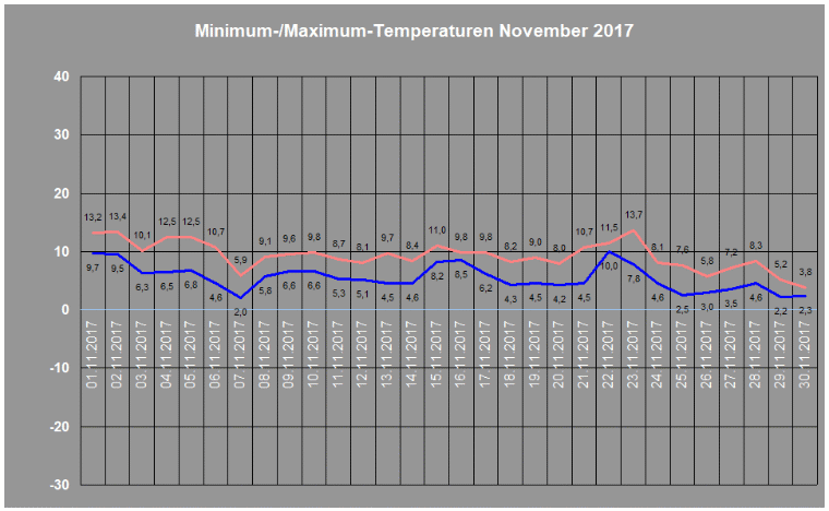 Durchschnittstemperatur im November 2017: 7,4 ° C