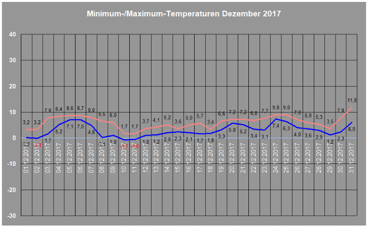Durchschnittstemperatur im Dezember 2017: 4,6 ° C