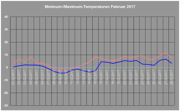 Durchschnittstemperatur im Februar 2017: 3,1 ° C