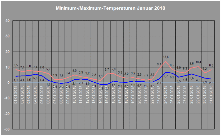 Durchschnittstemperatur im Januar 2018: 4,0 ° C