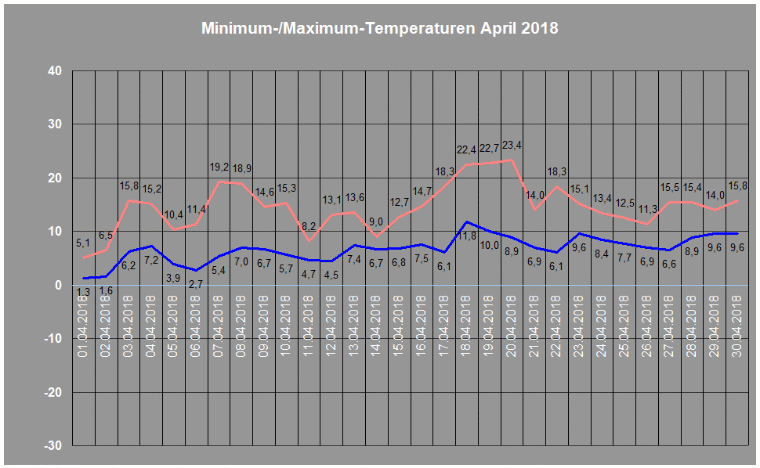 Durchschnittstemperatur im April 2018: 10,3 ° C