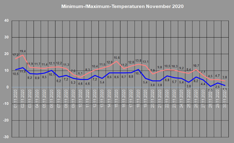 Durchschnittstemperatur im November 2020: 8,5° C