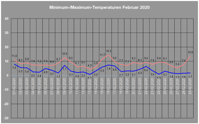 Durchschnittstemperatur im Februar 2020: 6,3 C