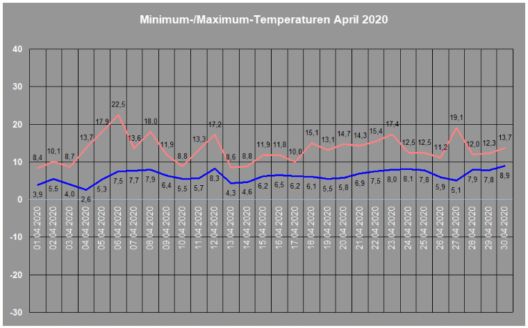 Durchschnittstemperatur im April 2020: 9,5° C