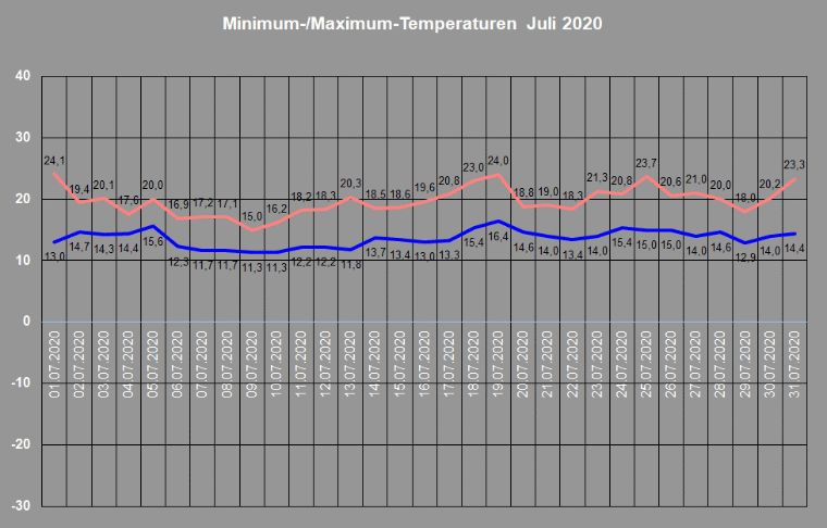 Durchschnittstemperatur im Juli 2020: 16,6° C