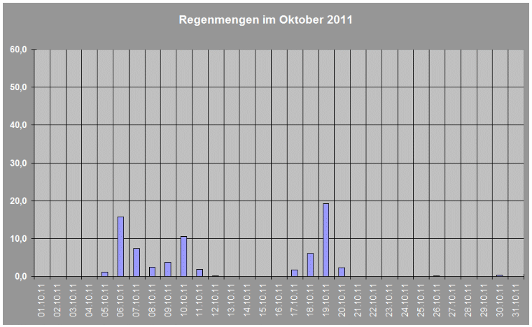 Regenmengen im Monat Oktober 2011 insgesamt: 72,9 L/qm