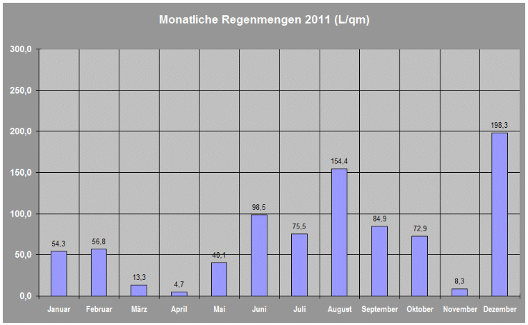 Übersicht monatliche Regenmengen in Cuxhaven im Jahr 2011