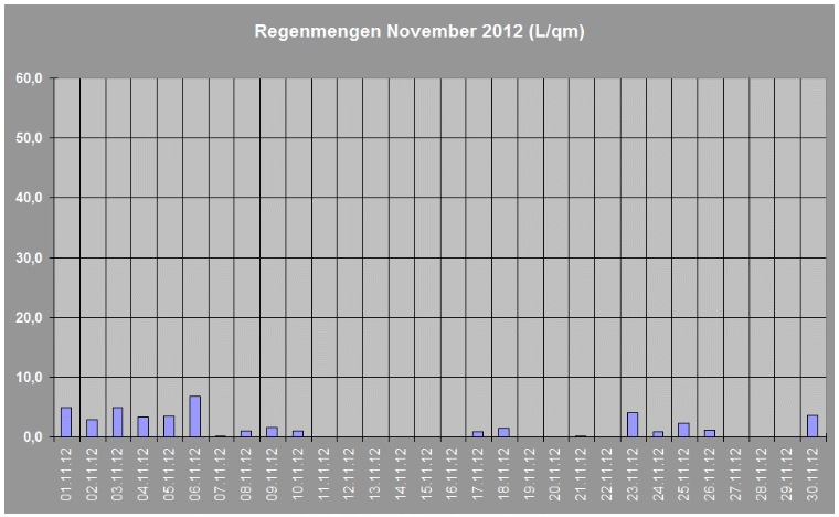 Regenmengen im November 2012 insgesamt: 44,5 L/qm