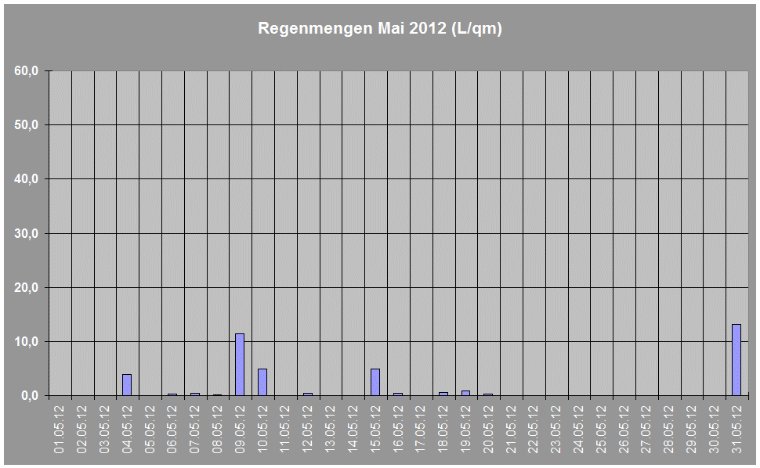 Regenmengen im Mai 2012 insgesamt: 41,8 L/qm