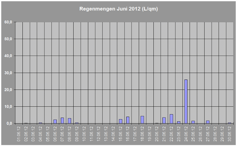Regenmengen im Juni 2012 insgesamt: 59,5 L/qm