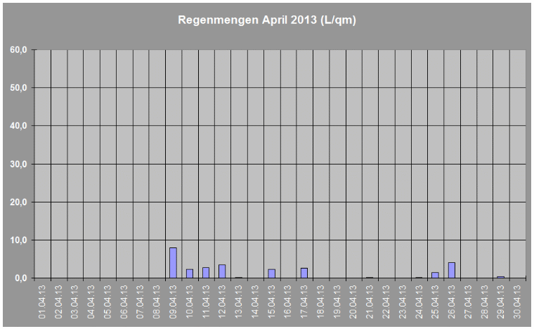 Regenmengen im April 2013 insgesamt: 27,6 L/qm