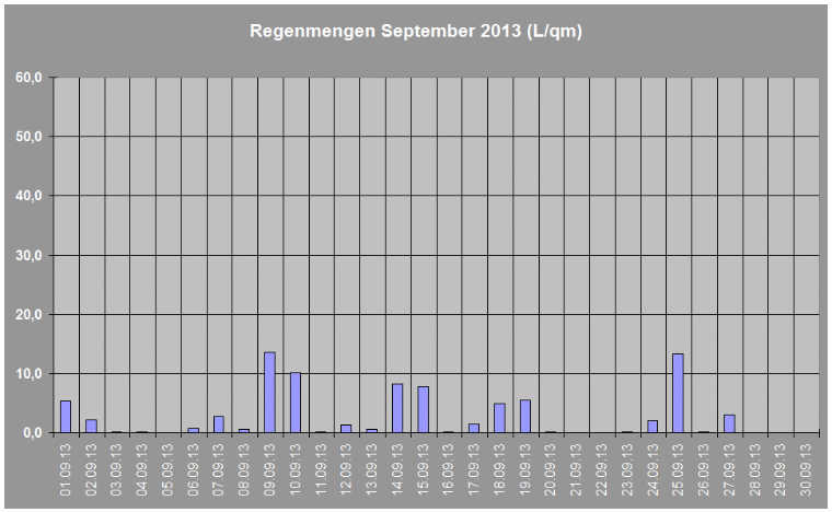 Regenmengen im September 2013 insgesamt: 84,4 L/qm