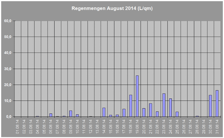 Regenmengen im August 2014 insgesamt: 135,4 L/qm