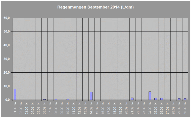 Regenmengen im September 2014 insgesamt: 26,7 L/qm