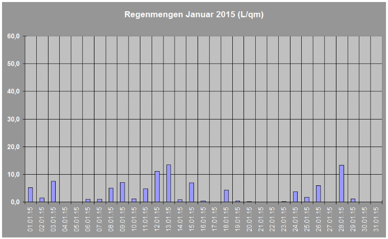 Regenmengen im Januar 2015 insgesamt: 98,5 L/qm