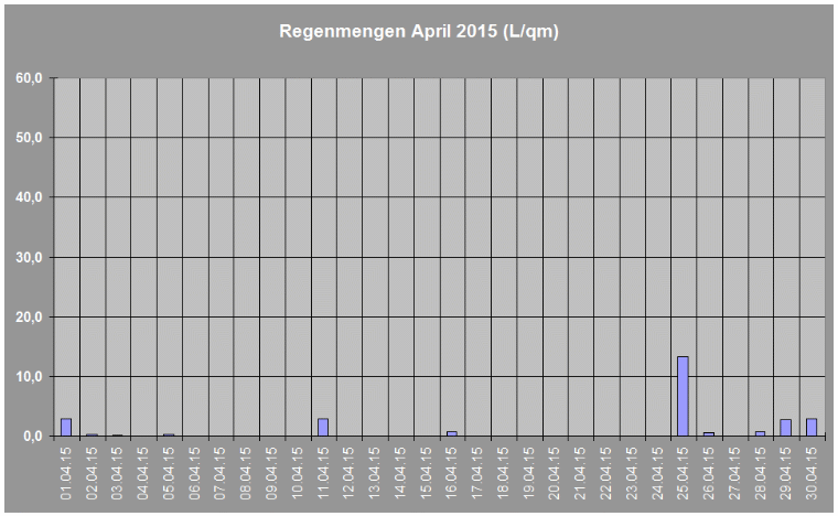 Regenmengen im April 2015 insgesamt: 27,6 L/qm