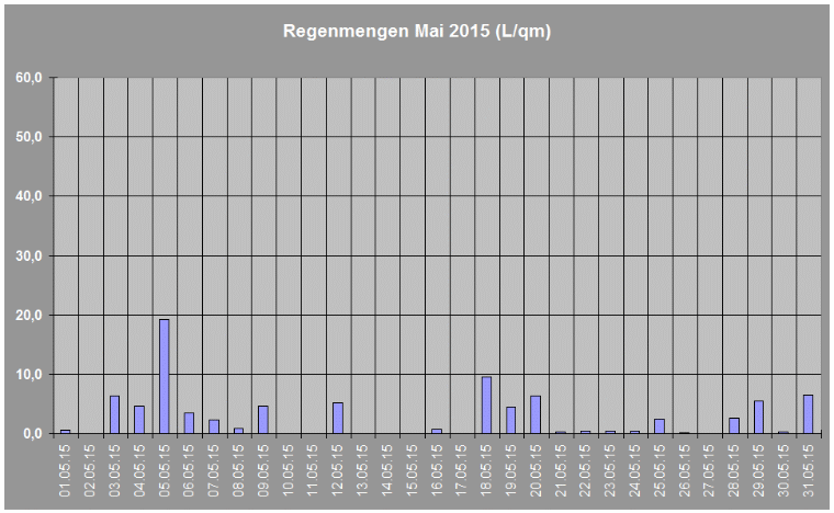 Regenmengen im Mai 2015 insgesamt: 87,7 L/qm