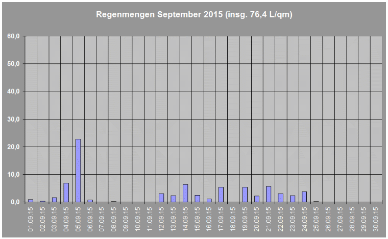 Regenmengen im September 2015 insgesamt: 76,4 L/qm