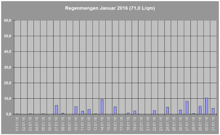 Regenmengen im Januar 2016 insgesamt: 71,0 L/qm