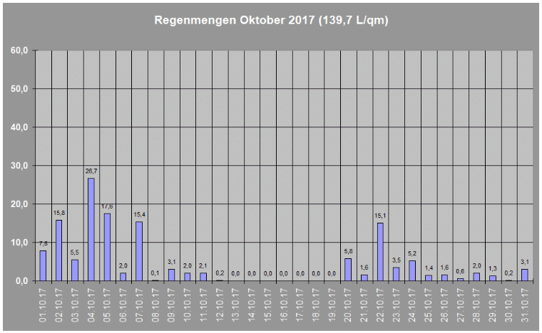 Regenmengen im Oktober 2017 insgesamt: 139,7 L/qm
